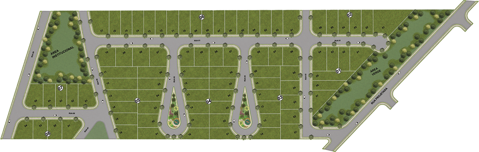 Área total: 48.400 m2 • Infraestrutura: Rede de água potável, rede escoamento pluvial, Rede de energia elétrica com Iluminação Publica, asfalto, guias e sarjetas. Complemento: Área de lazer com caminhada , playground e paisagismo.